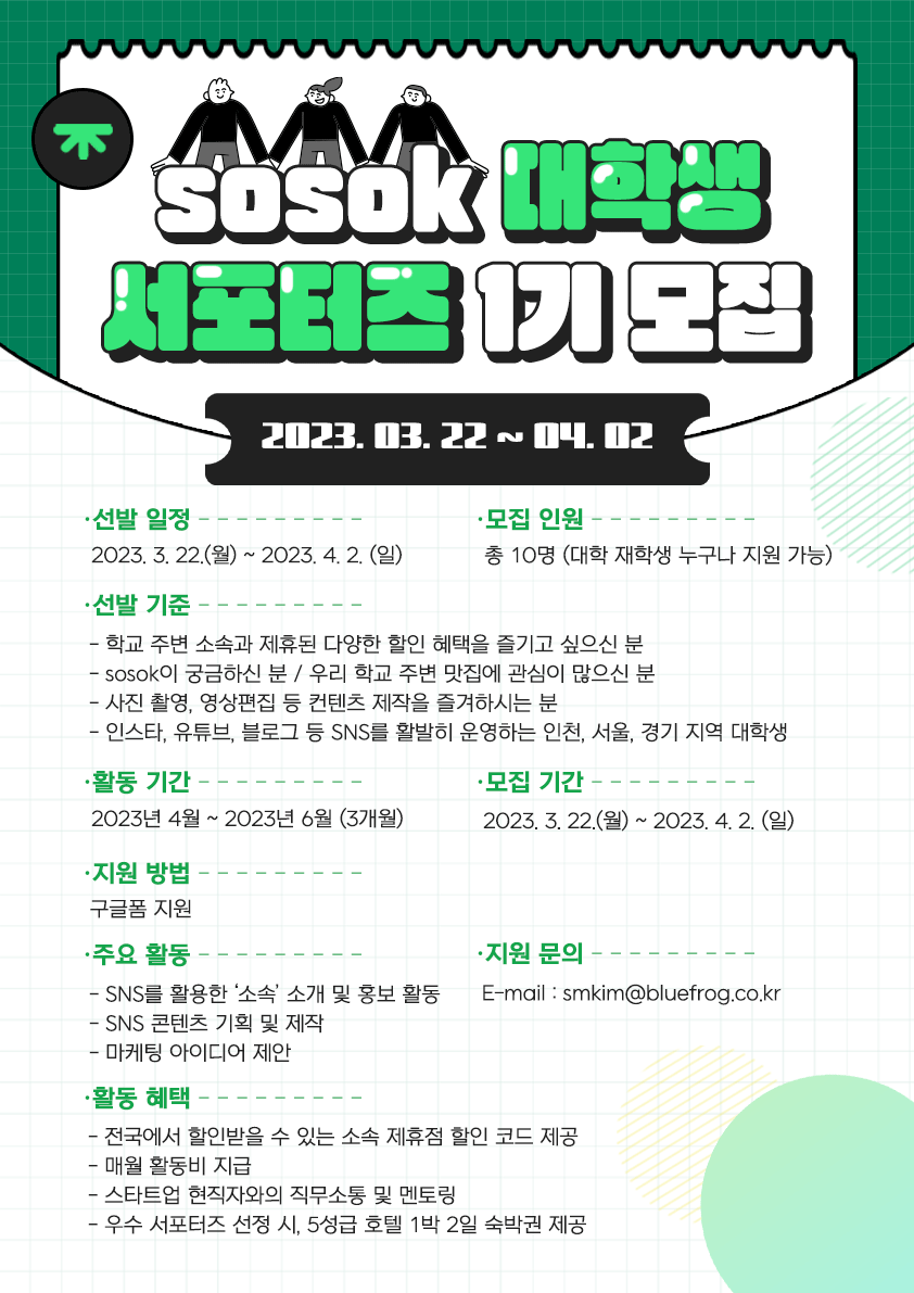 소속 할인 리워드 앱 'sosok' 서포터즈 1기를 모집합니다!