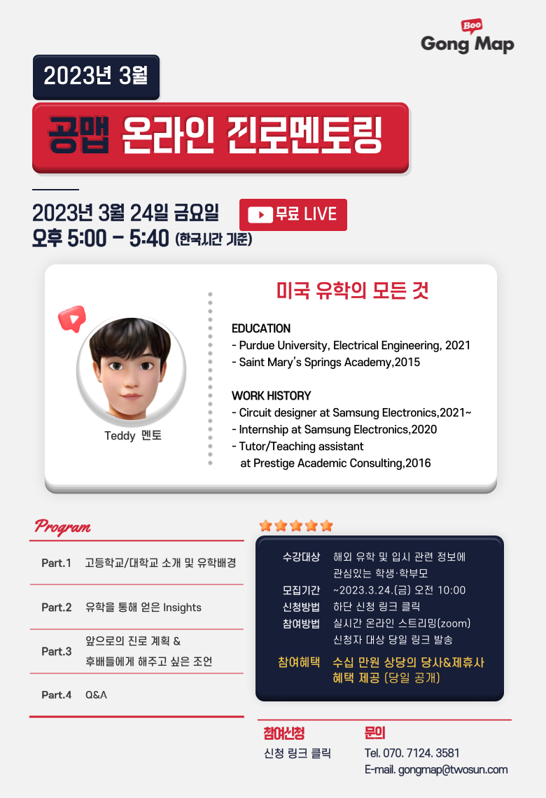 공맵 온라인 진로멘토링은 국내외 유학 선배들의 진로·진학·유학 경험을 나누기 위해