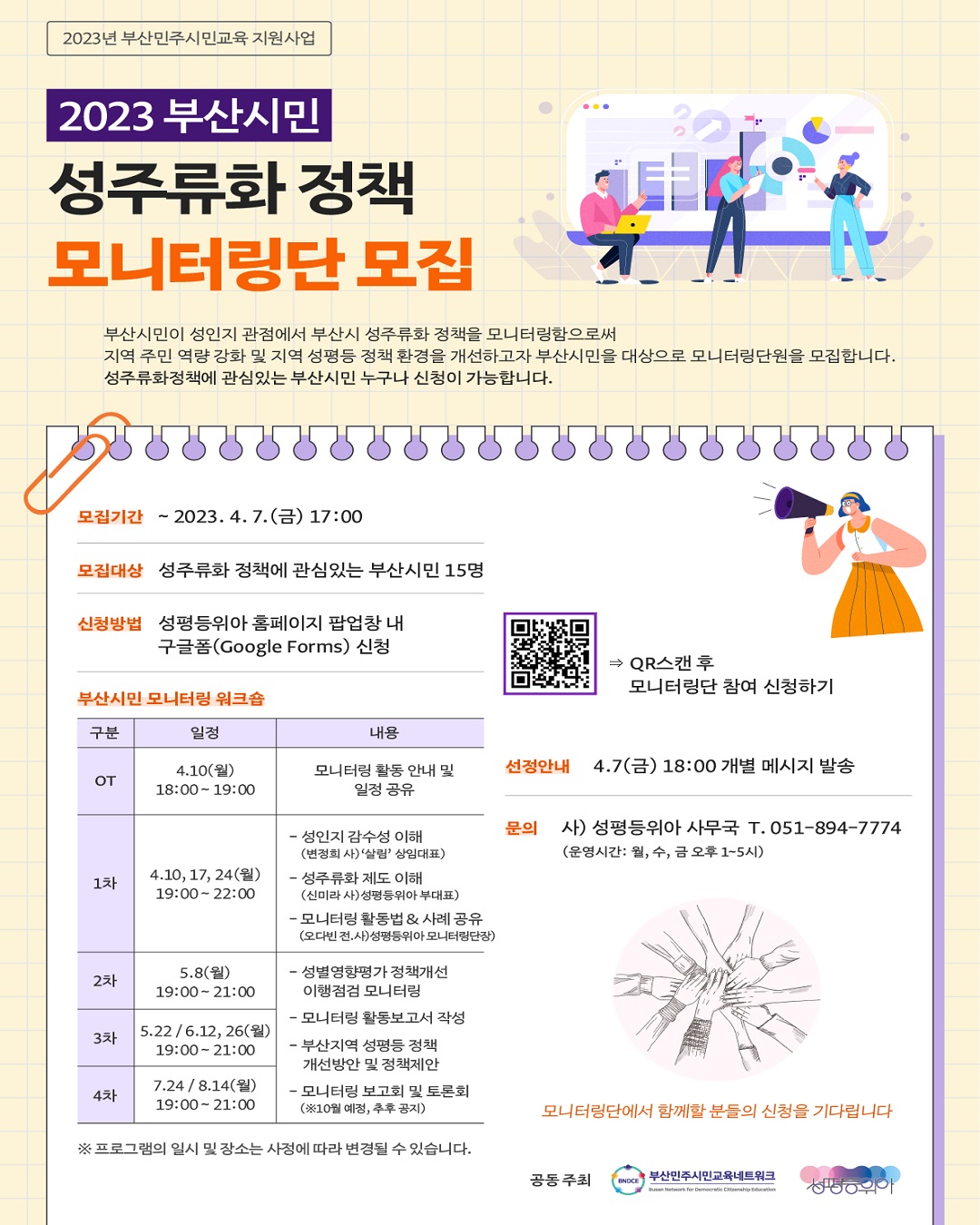 2023 부산시민 성주류화 정책 모니터링단 모집