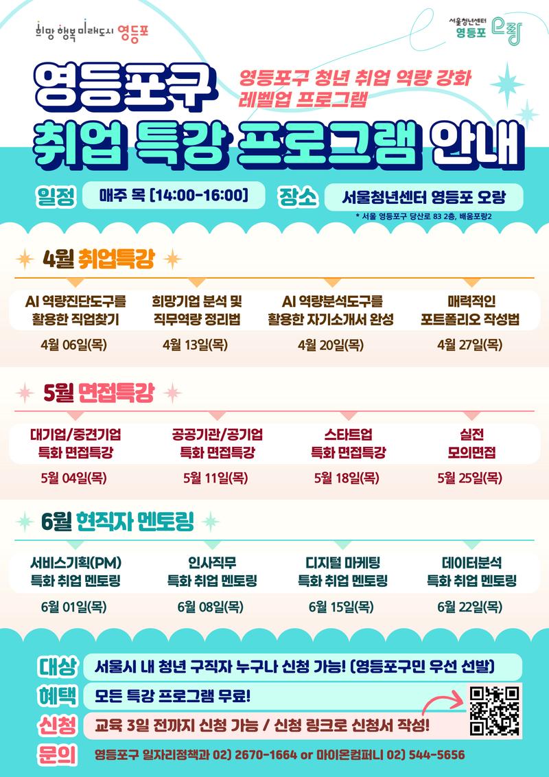 [상반기 취업 무료특강] 4월 청년 취업 역량 강화 레벨업 프로그램_참여자 모집(영등포구청X마이온)