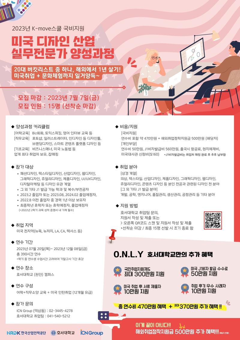 📍연수장소 호서대학교 (천안) 캠퍼스 📖연수구성 어학+직무소양교육+미국 인턴(12개월 유급)