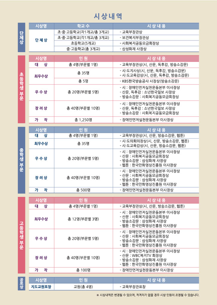 ● 시상 내역 교육부장관상 등(*자세한 내용은 참가요강 참조)
