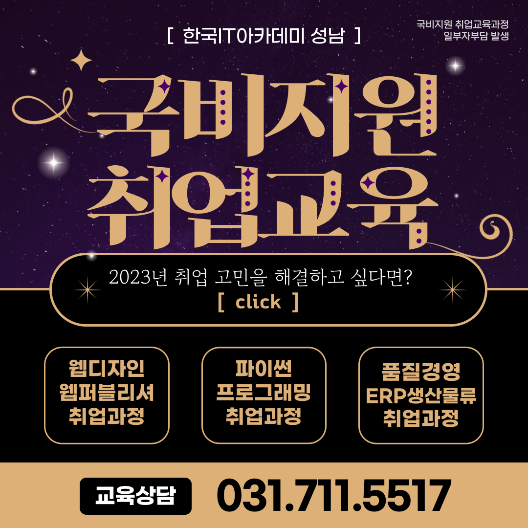💻 구직자과정(취업과정) 🔊 홈페이지 제작과정(웹퍼블리싱) 🔊 품질경영관리(QMQC) ERP과정 🔊 파이썬(Python)을 활용한 빅데이터 분석 전문가 입문 🔊 빅데이터 분석 및 개발자 입문을 위한 파이썬(Python) 프로그래밍