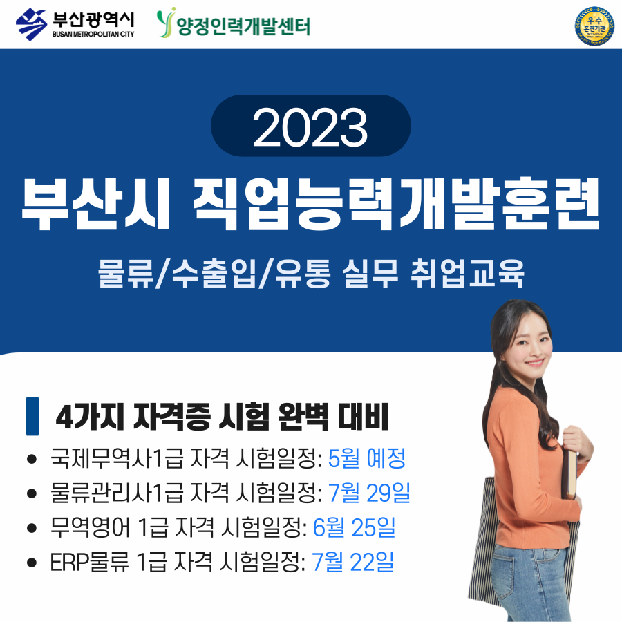 - 부산시 전액국비무료 무역·물류 분야 취업특화 훈련