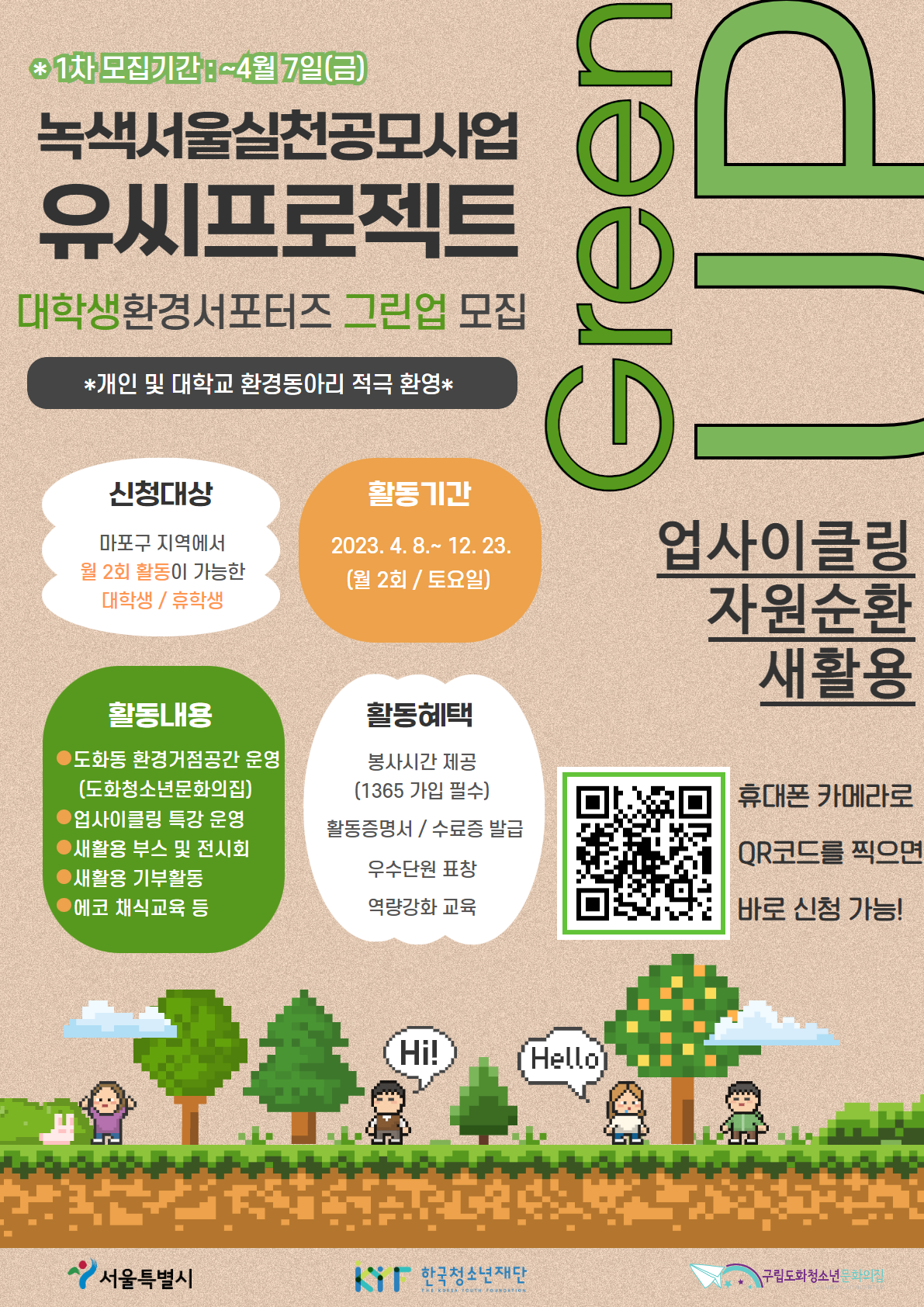 [녹색서울실천공모사업 유씨프로젝트 ‘대학생환경서포터즈 그린업’ 모집]
