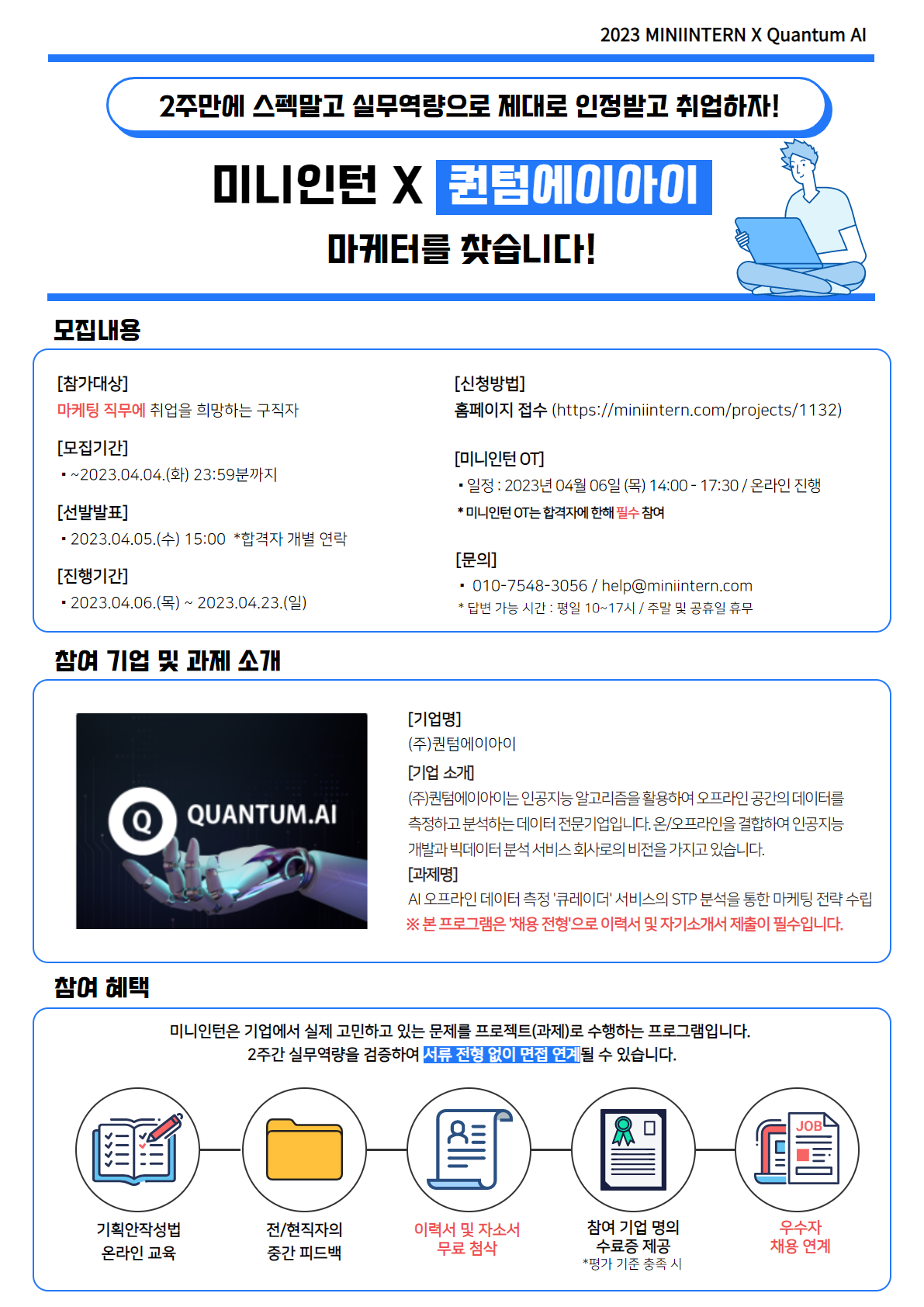 지금 바로 [미니인턴X퀀텀에이아이] 신청하고,