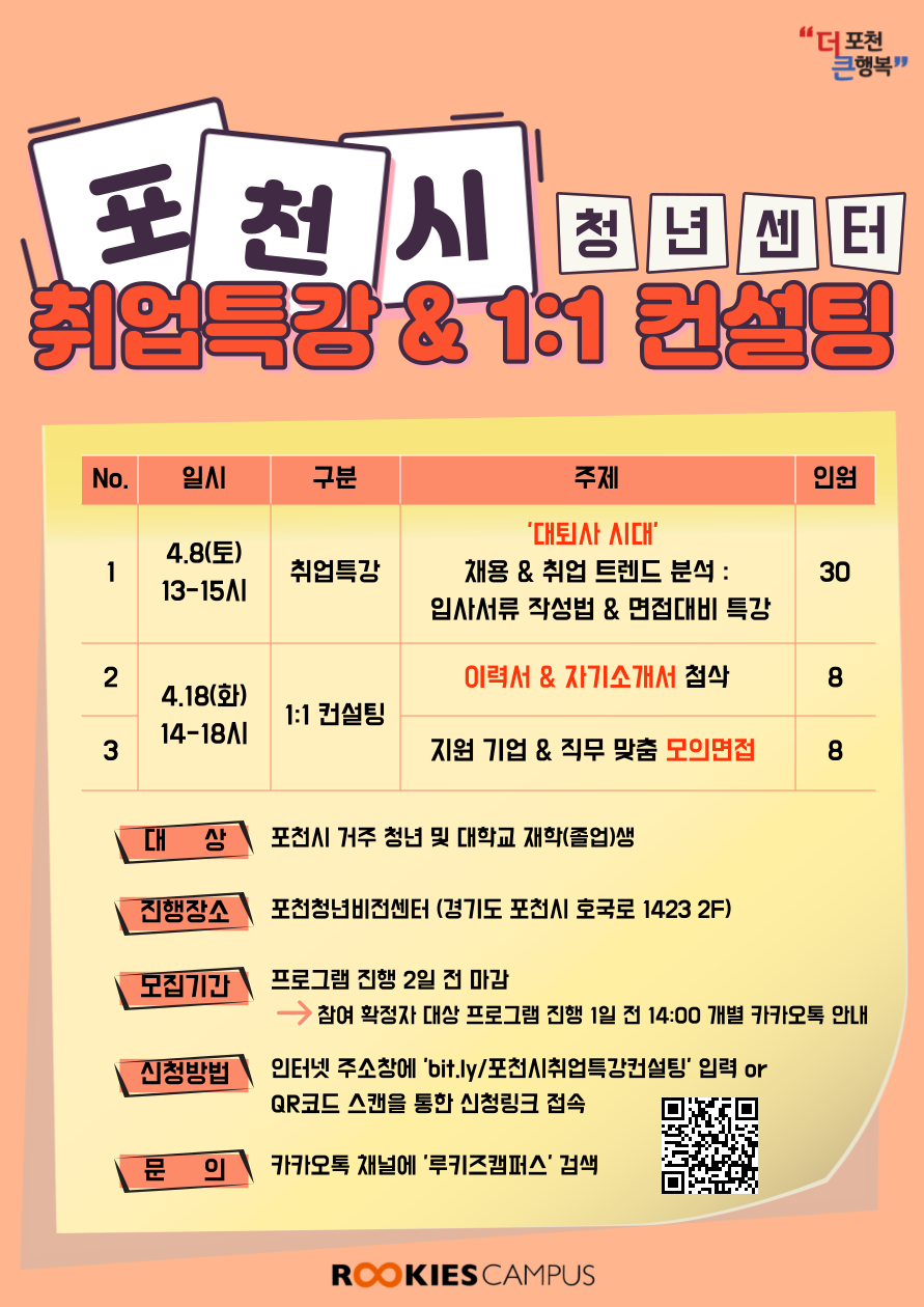 **취업 전문 컨설턴트가 함께하는 포천시 청년센터 <취업특강 & 1:1 컨설팅>