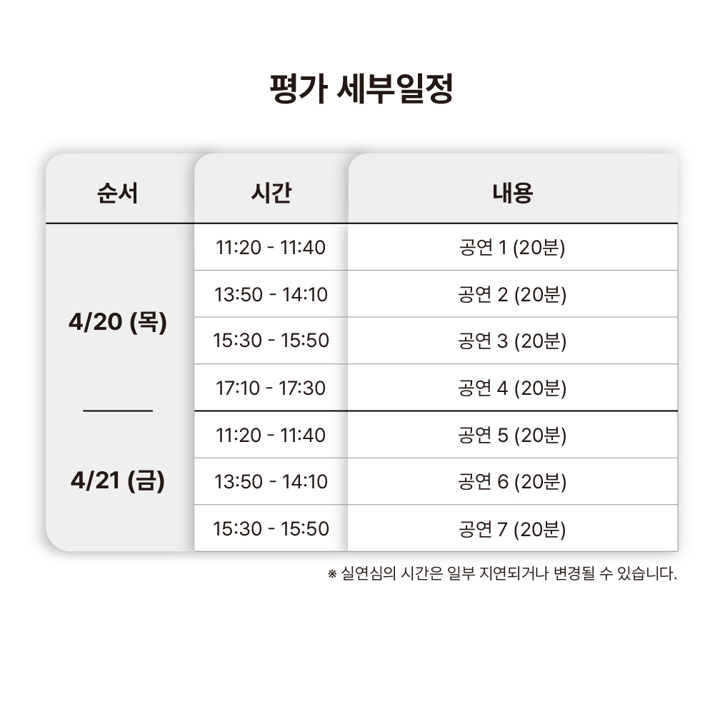 사례비는 일별 2만원이 지급되며, 해당 분야 실연심의 전일 참여 이후 일괄 지급됩니다.