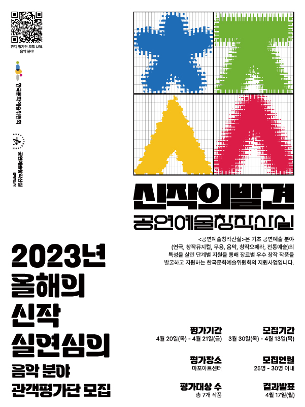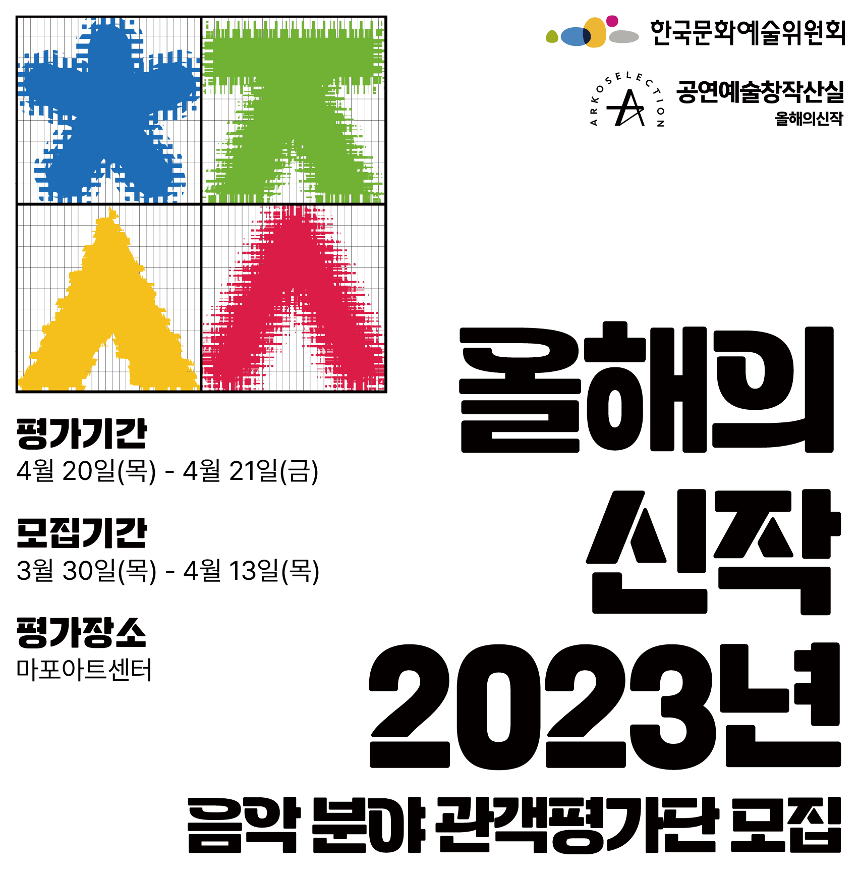2023년도 공연예술창작산실 올해의신작 실연심의 음악 분야 관객평가단을 모집합니다.