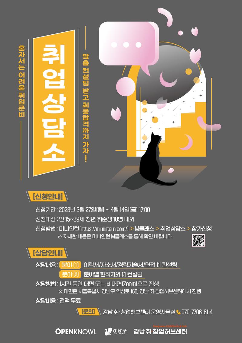 🟧 강남 취•창업허브센터홈페이지: http://www.gangnam-jobnstartup.com/ 🟧 문의처: 강남 취•창업허브센터 운영사무실 070-7706-6114