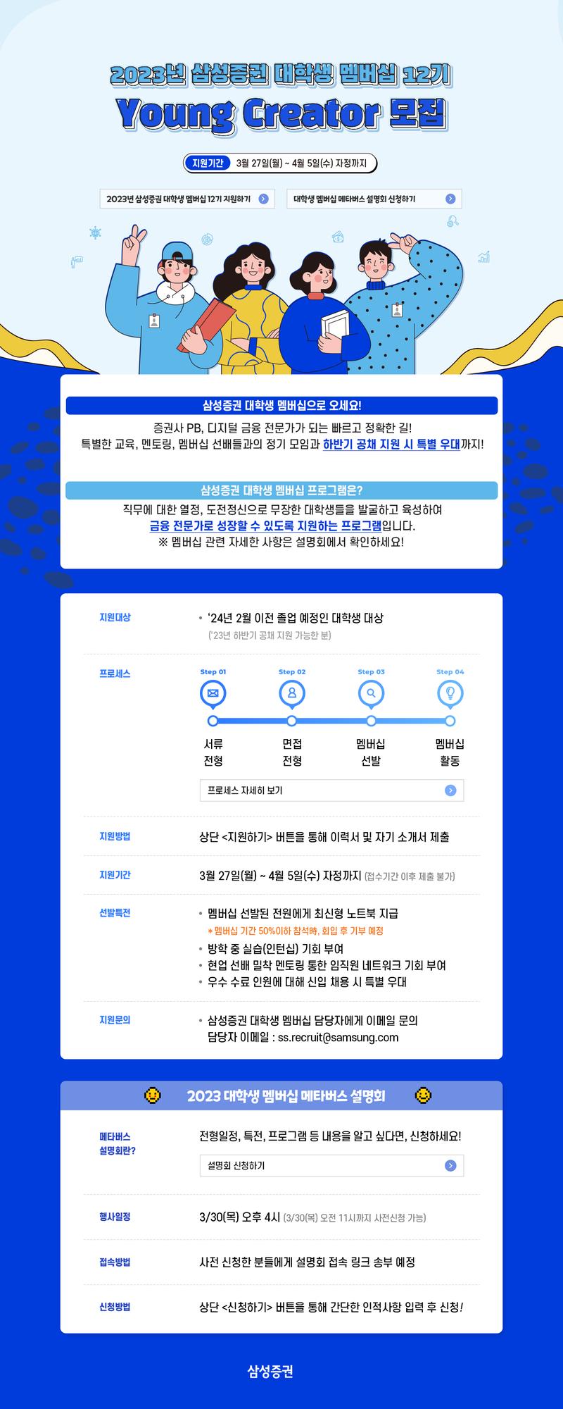 ● 제목 2023년 삼성증권 대학생 멤버십 12기 Young Creator모집(\~4/5)