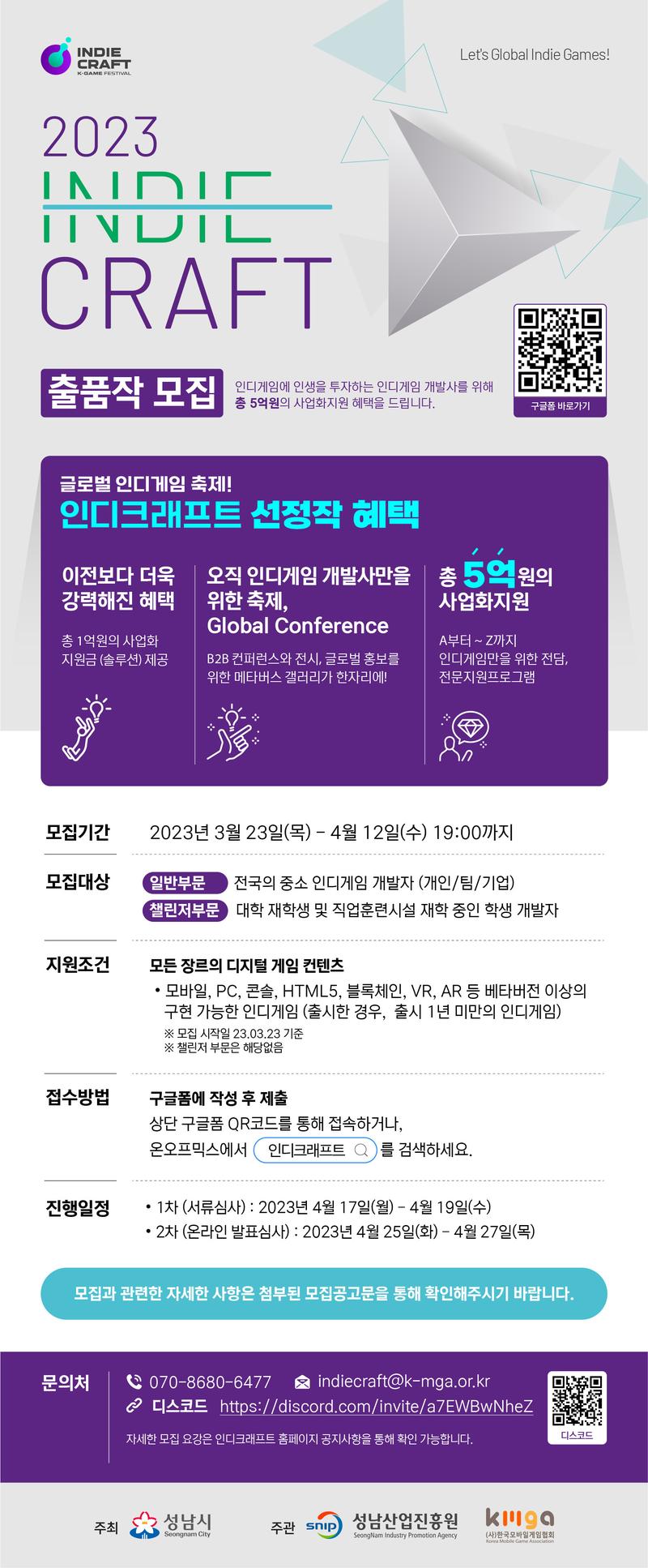 ㅇ 문의처 : 인디크래프트 운영 사무국(indiecraft@k-mga.or.kr)