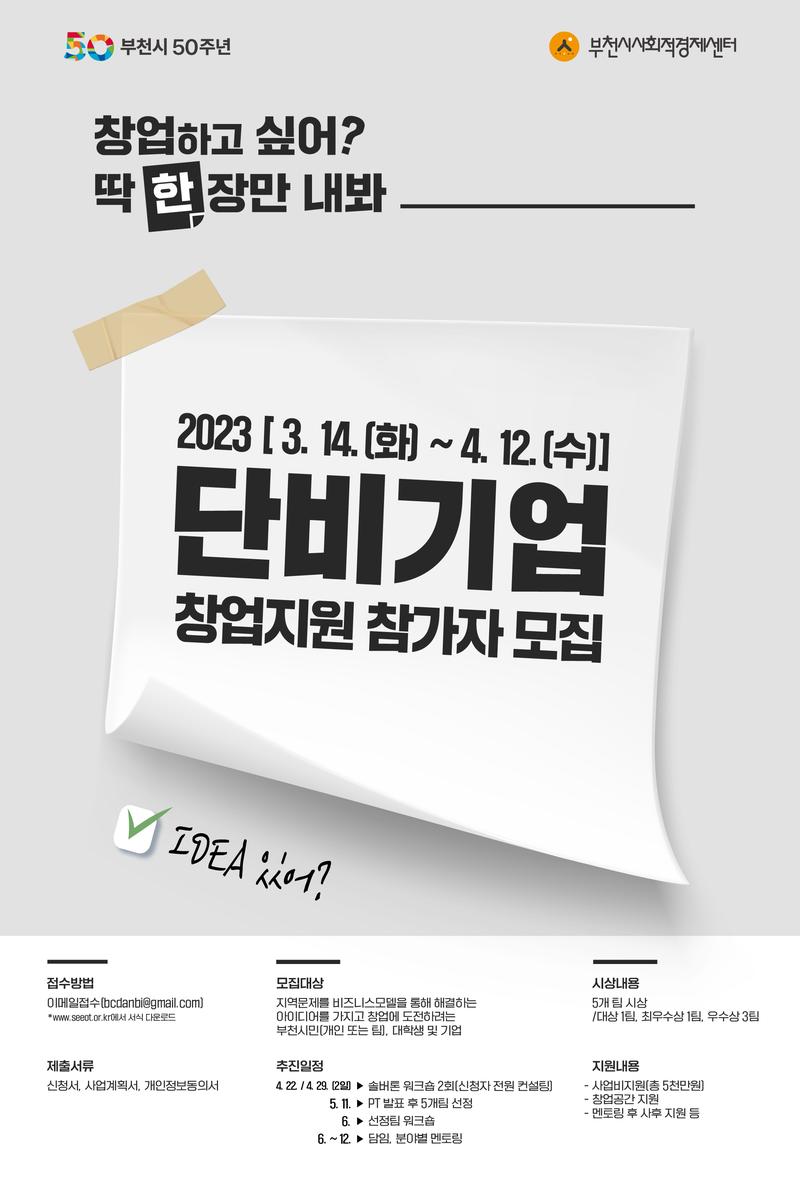 2023년 부천단비기업 창업지원사업