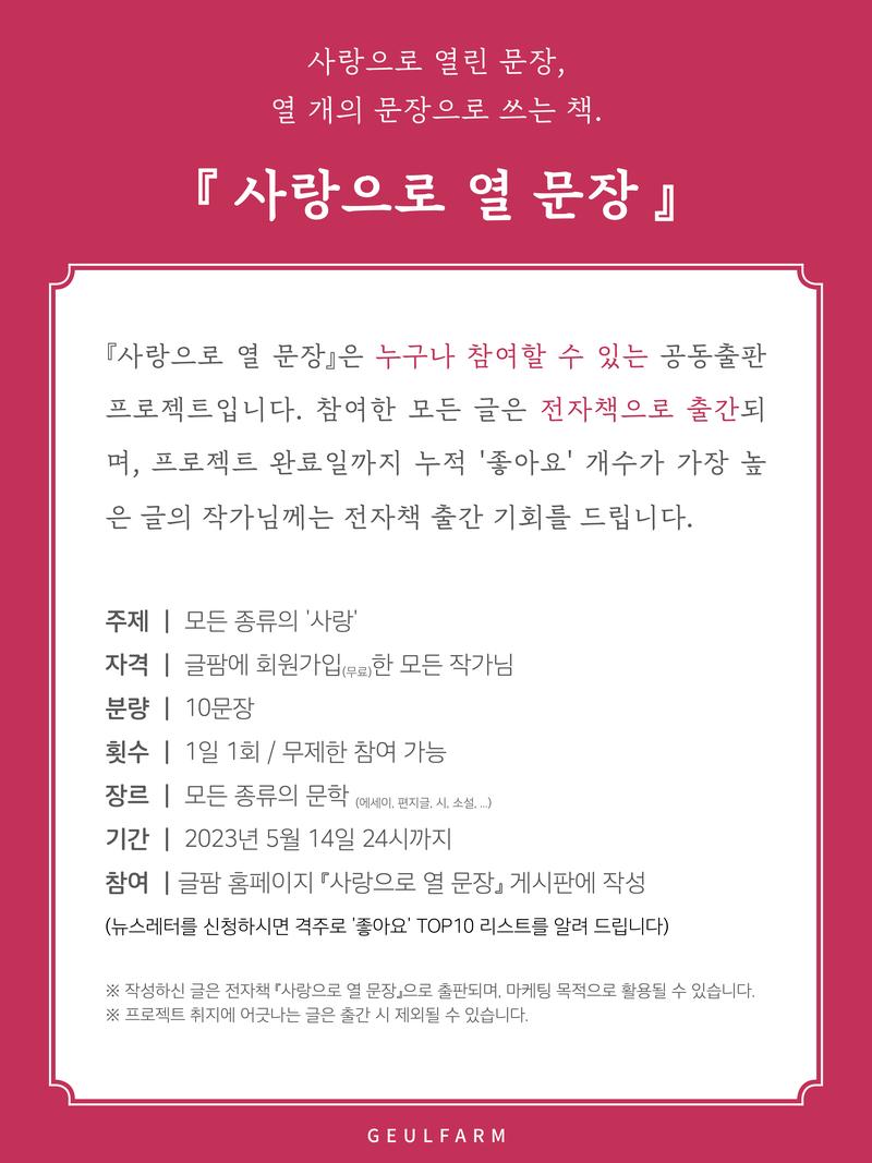 전자책 공동출판 프로젝트 『사랑으로 열 문장』 - '사랑'에 관한 문장 열 개를 쓰면 책으로 출간됩니다 -