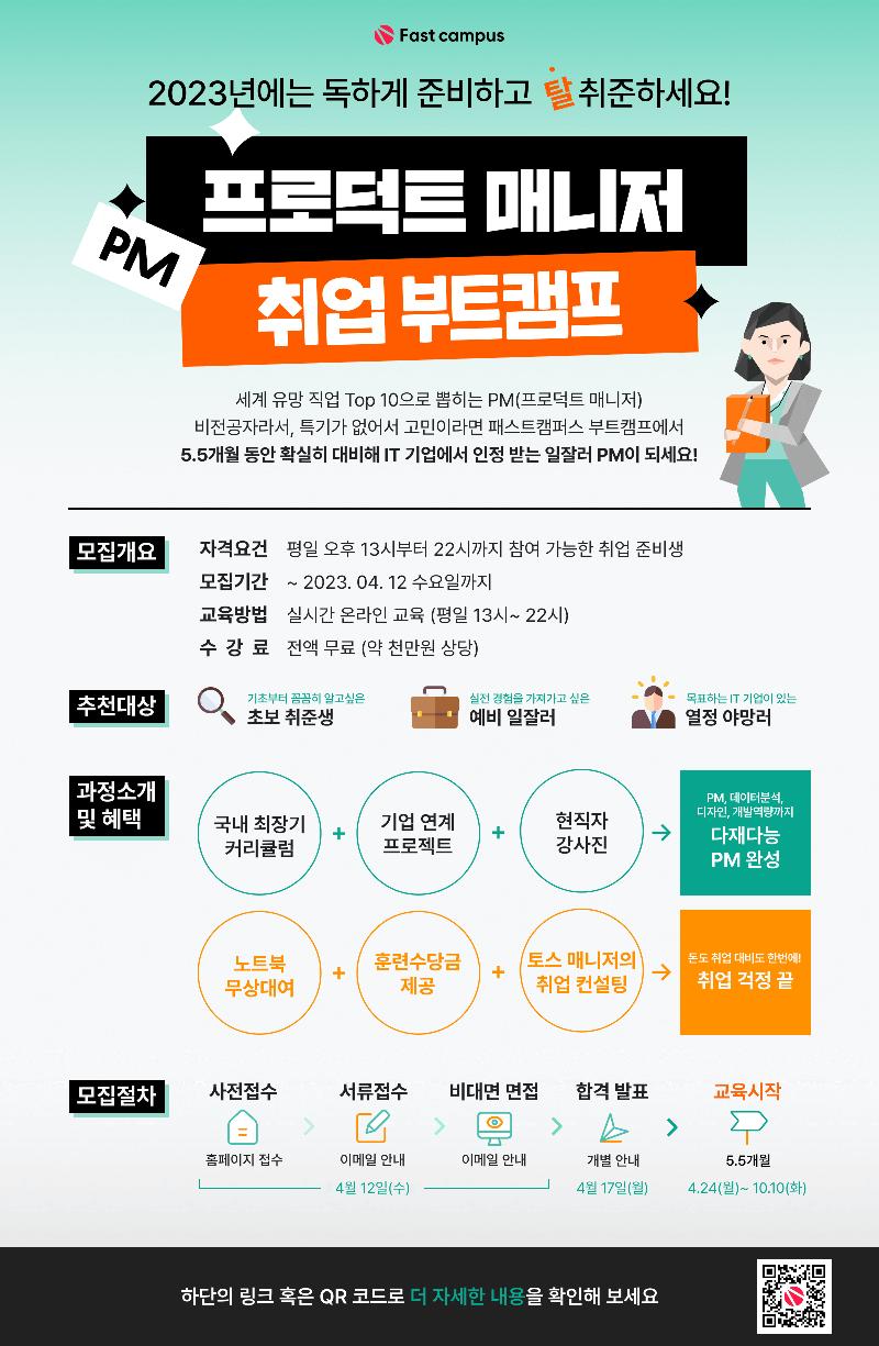 🙋♀️노스펙, 비전공자라 다른 취준생은 없는 특기가 필요하다면 🌟집중🌟 패스트캠퍼스 : PM 부트캠프에서는 탄탄한 이론부터 IT 협업 경쟁력으로 기업에서 주목하는 신입 PM완성!