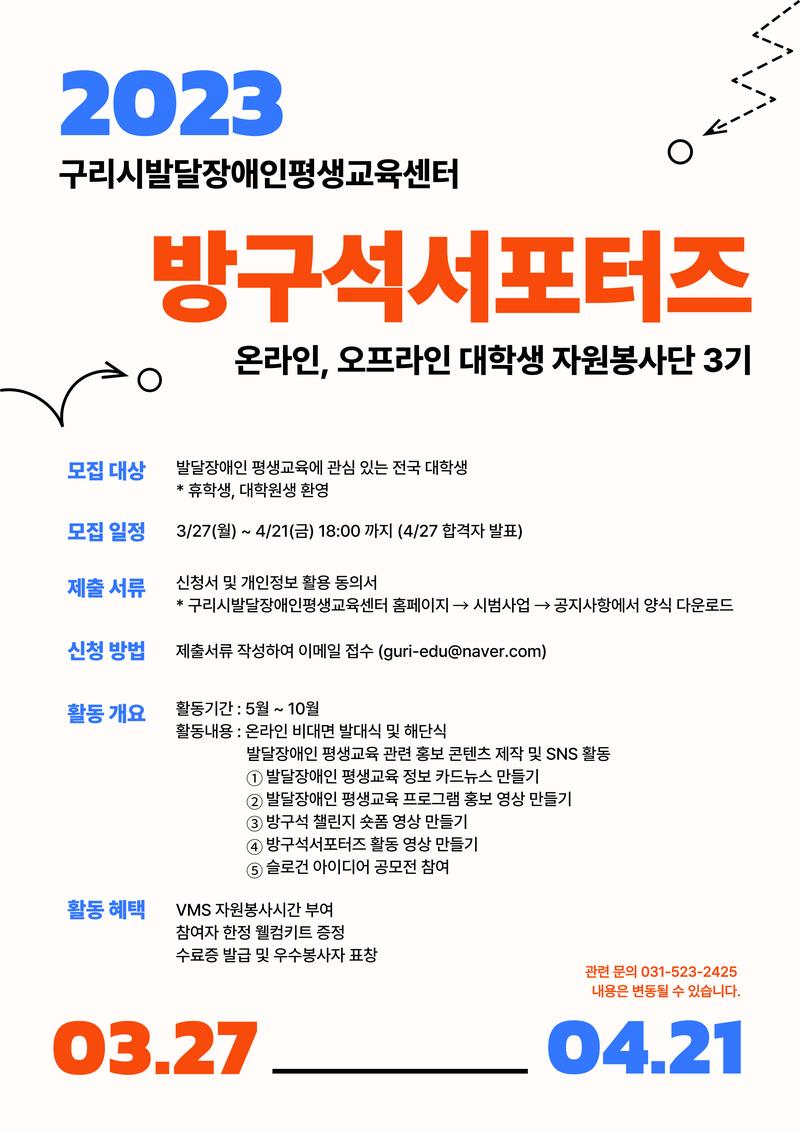 [대학생 온오프라인 자원봉사단 '방구석 서포터즈' 3기 모집]