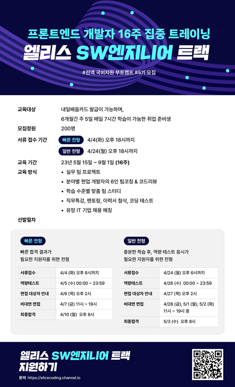 - 교육비 전액 지원 & 월 30만원 학습 장려금 지급