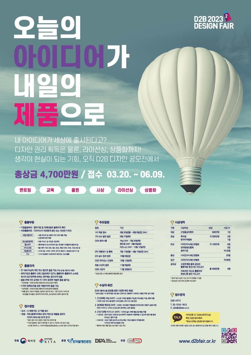 ‘2023 D2B 디자인페어’ 사무국 - 이메일 d2b@d2bfair.or.kr - 전화 02-3153-7612