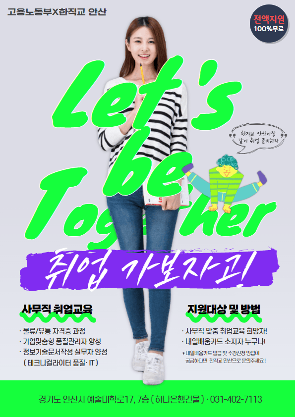 👨💼 한직교 안산의 취업지원시스템 직업상담 자격 보유한 전문 상담사 취업지원 이력서 클리닉, 자기소개서 작성 취업특강 진행 수료 후 사후관리 6개월 진행 취업지원 및 관련직종 모의면접 진행