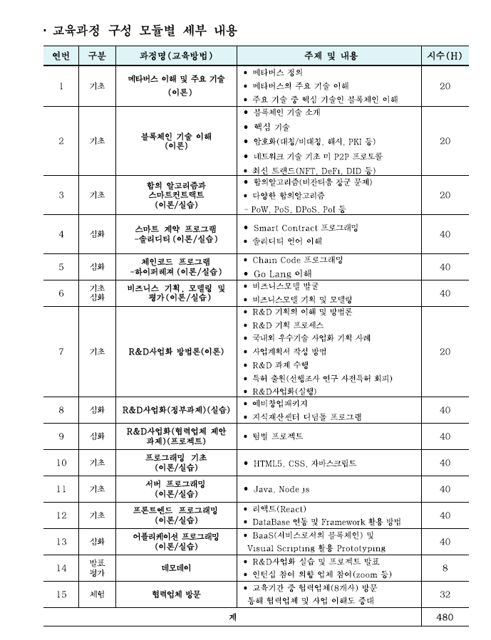 * 사업명: 메타버스 핵심기술, 블록체인 기반의 기술사업화 전문인력 양성과정 2차