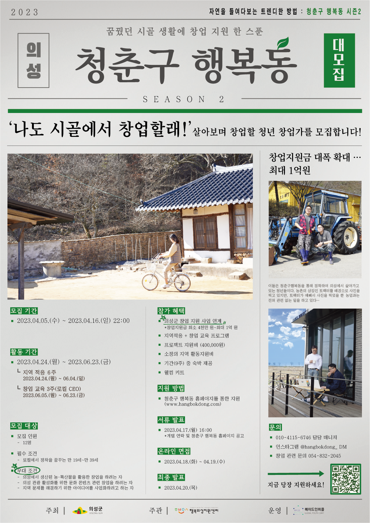 📢 새롭게 돌아온 청춘구행복동 시즌2, 1기 입주민을 모집합니다❗️