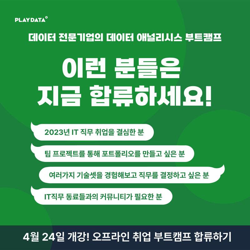 ■ 교육 문의 실시간 채팅 상담 : https://playdata.channel.io