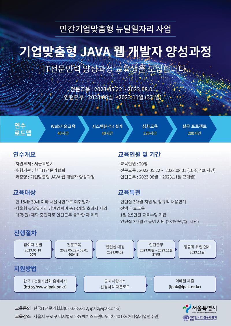 ⭐기업 맞춤형 자바(JAVA) 웹 개발자 전문 인력 양성 및 취업 연계 과정 인턴 모집⭐