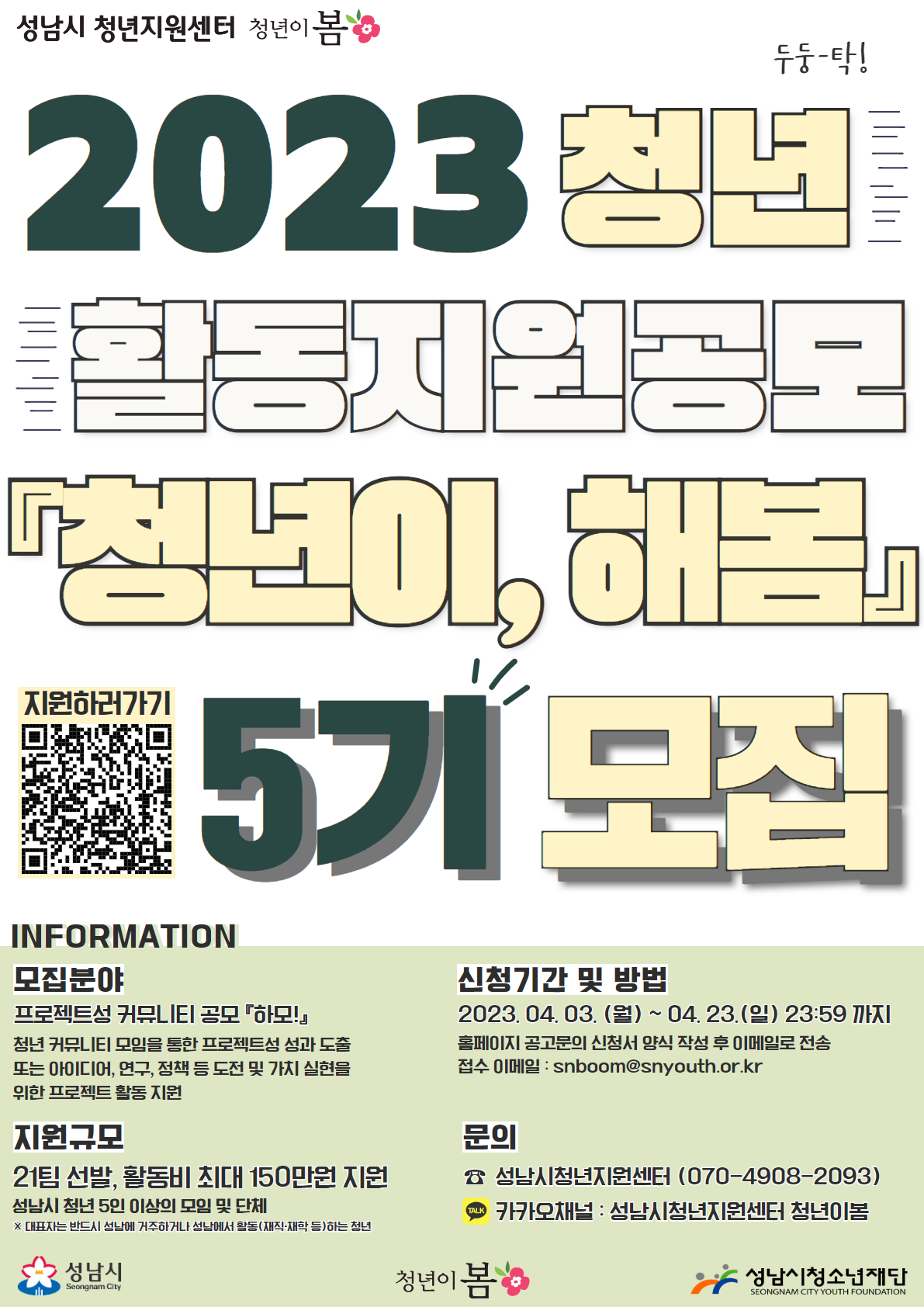 - 카카오채널 : 성남시청년지원센터 청년이봄