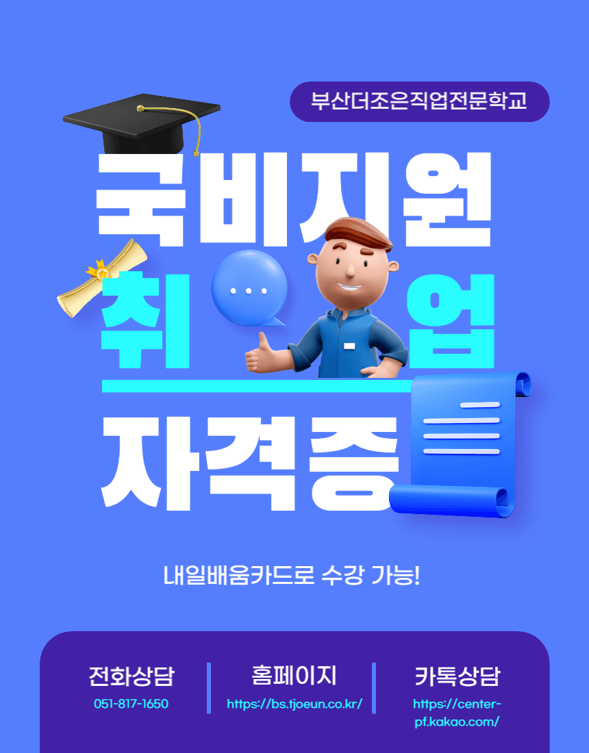 과정 상세 내용은 여기서 확인! ▶ 더조은직업전문학교 부산점 (tjoeun.co.kr)