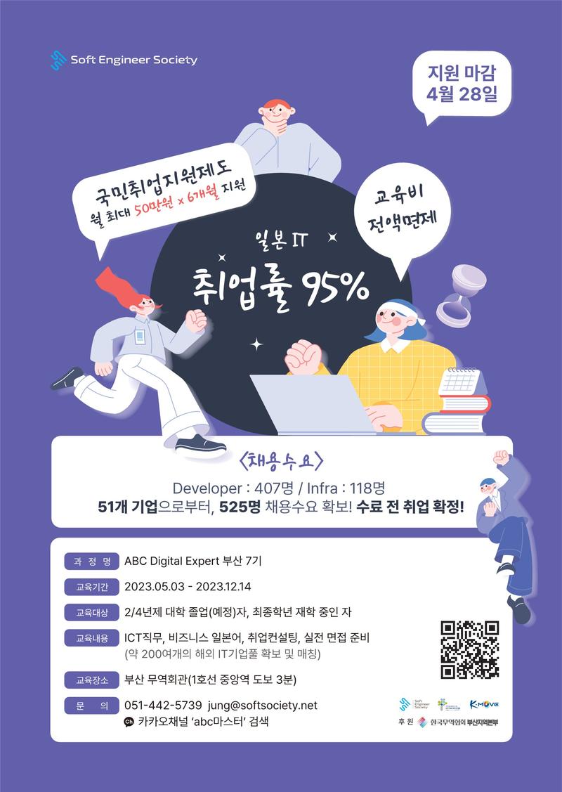🙂 한국산업인력공단 선정 우수 해외취업과정 (2018년\~2020년) 🙂2022 일자리 창출 유공 고용노동부 표창 🙂2021 과기부 SW전문양성기관 지정 🙂 2001년부터 21년간 2,800명을 배출, 평균 취업률 95%를 달성한 Soft Engineer Society 직접 운영 🙂 매년 2회 개최하는 교육생 전용 서울&도쿄 브릿지 잡페어 운영 🙂 IT/일본어 비전공자도 성공적으로 수료할 수 있는 교육 노하우 축적