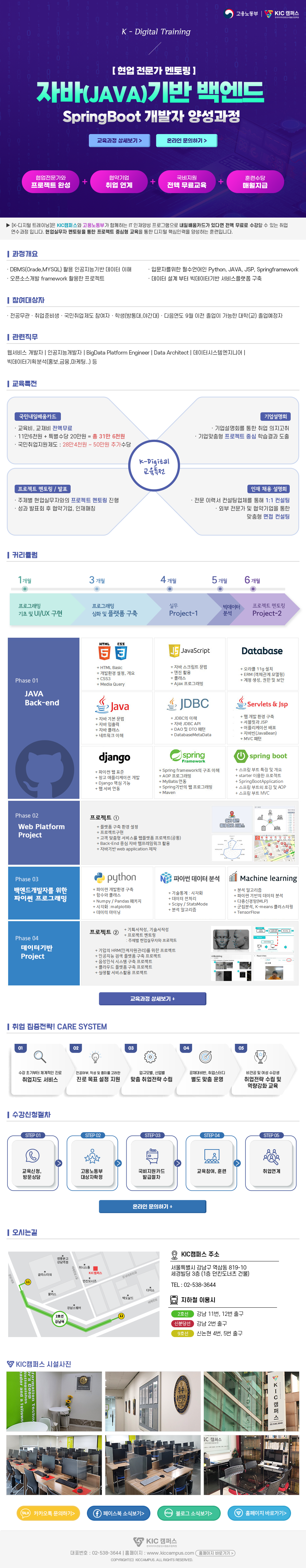 ○ 과정명 : [K디지털] 자바기반 백엔드 Spring Boot 개발자 양성과정 ▶ 04월 26일 개강