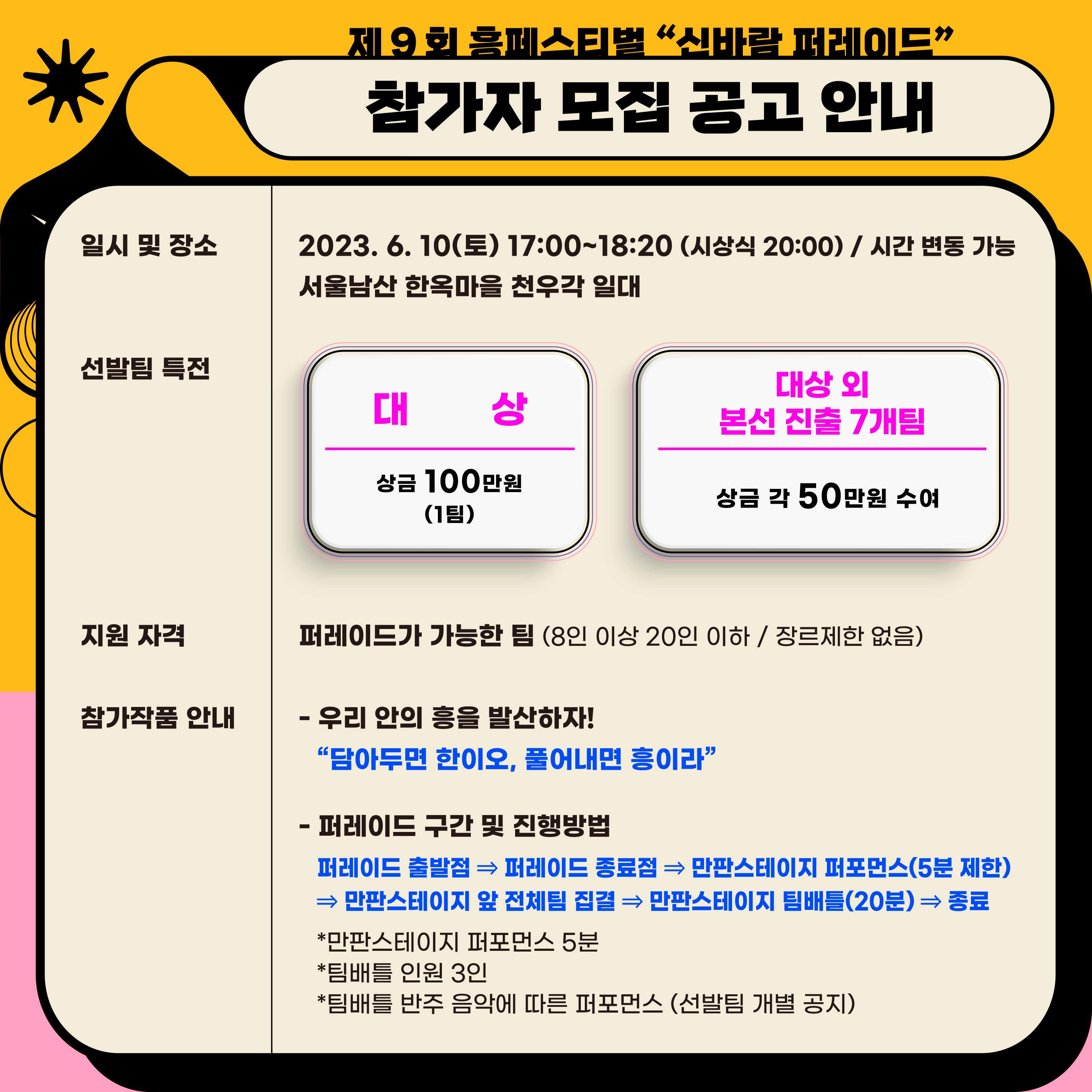 【제 9회 흥페스티벌】 ★신바람 퍼레이드★ 참가자 모집