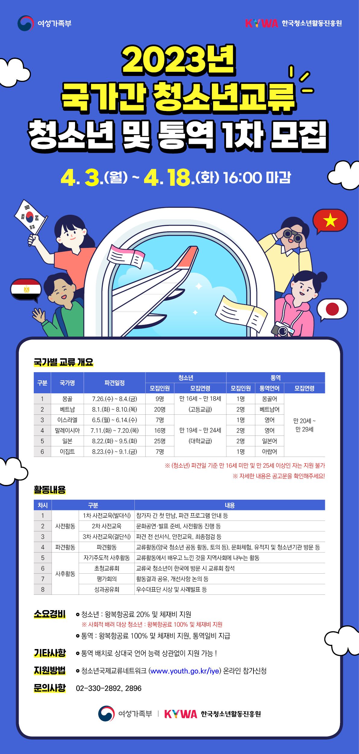 [2023년 국가간 청소년 교류 파견대표단 청소년 및 통역 1차 모집]