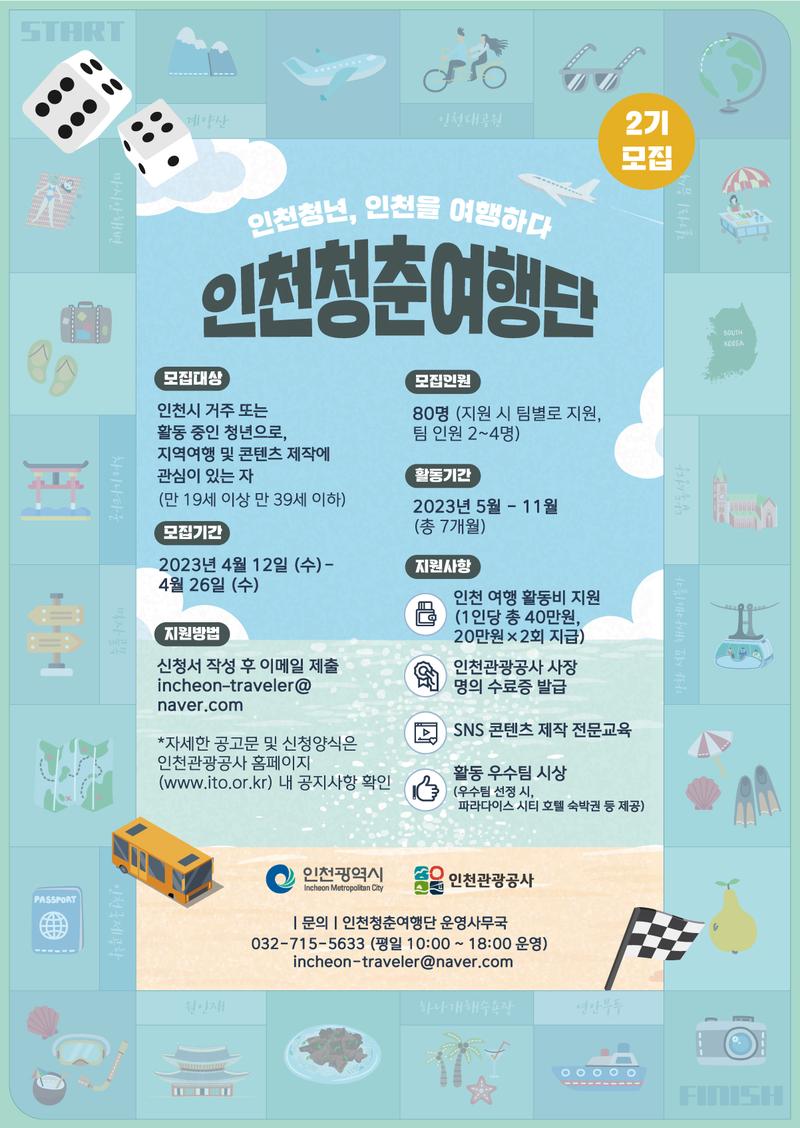 인천 청년이 만드는 인천 지역 여행을 즐기며, 새로운 인천의 관광자원을 발굴하여 홍보하는 인천청춘여행단 2기를 모집합니다!