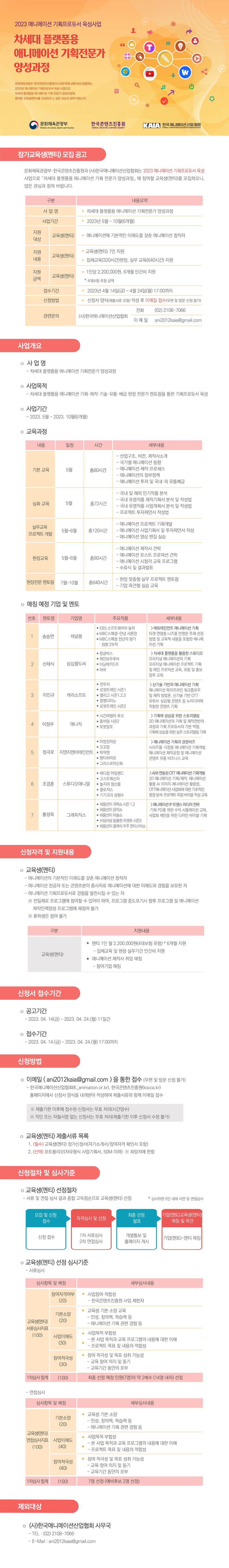 2023 차세대 플랫폼용 애니메이션 기획전문가 교육생(멘티)모집 공고문_(사)한국애니메이션산업협회