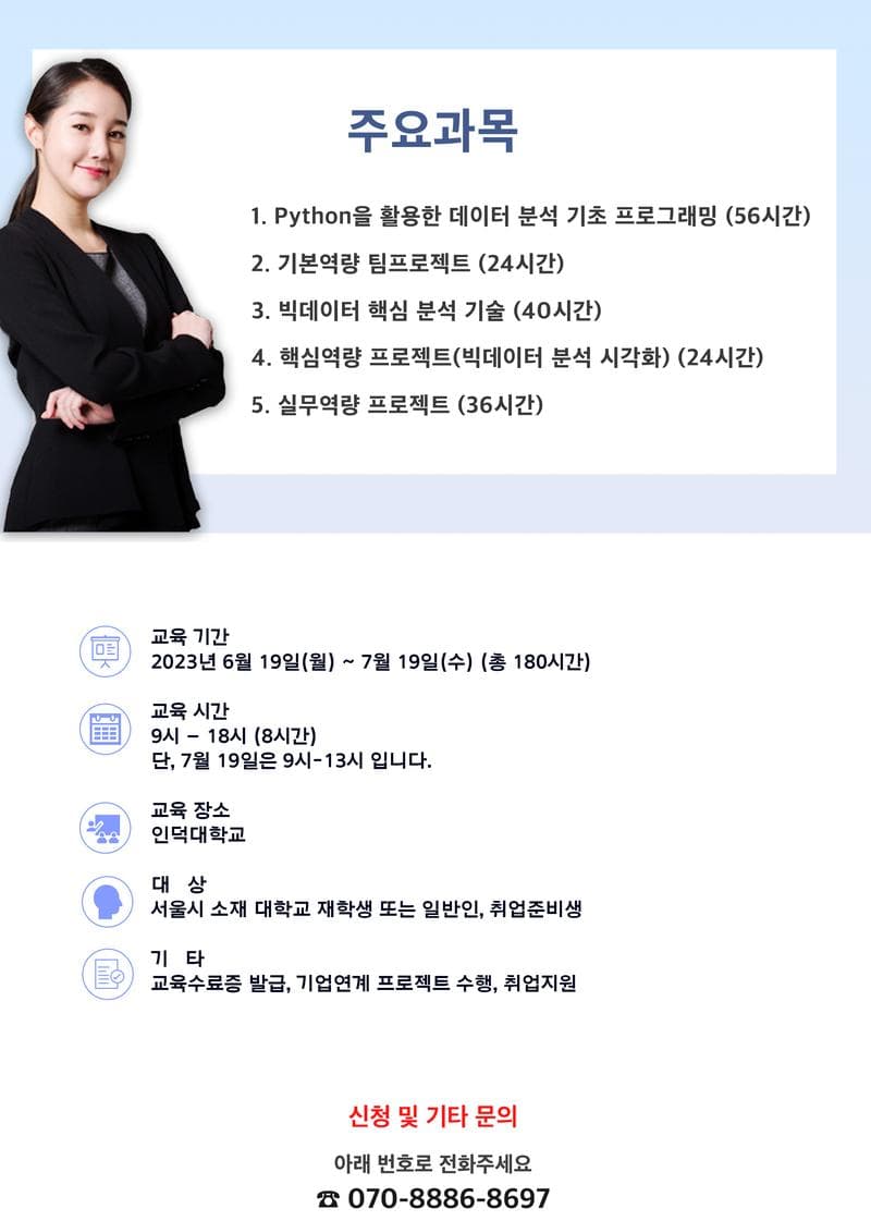 ㅁ 교육 기간 : 2023년 6월 19일(월) \~ 7월 19일(수) (총 180시간)
