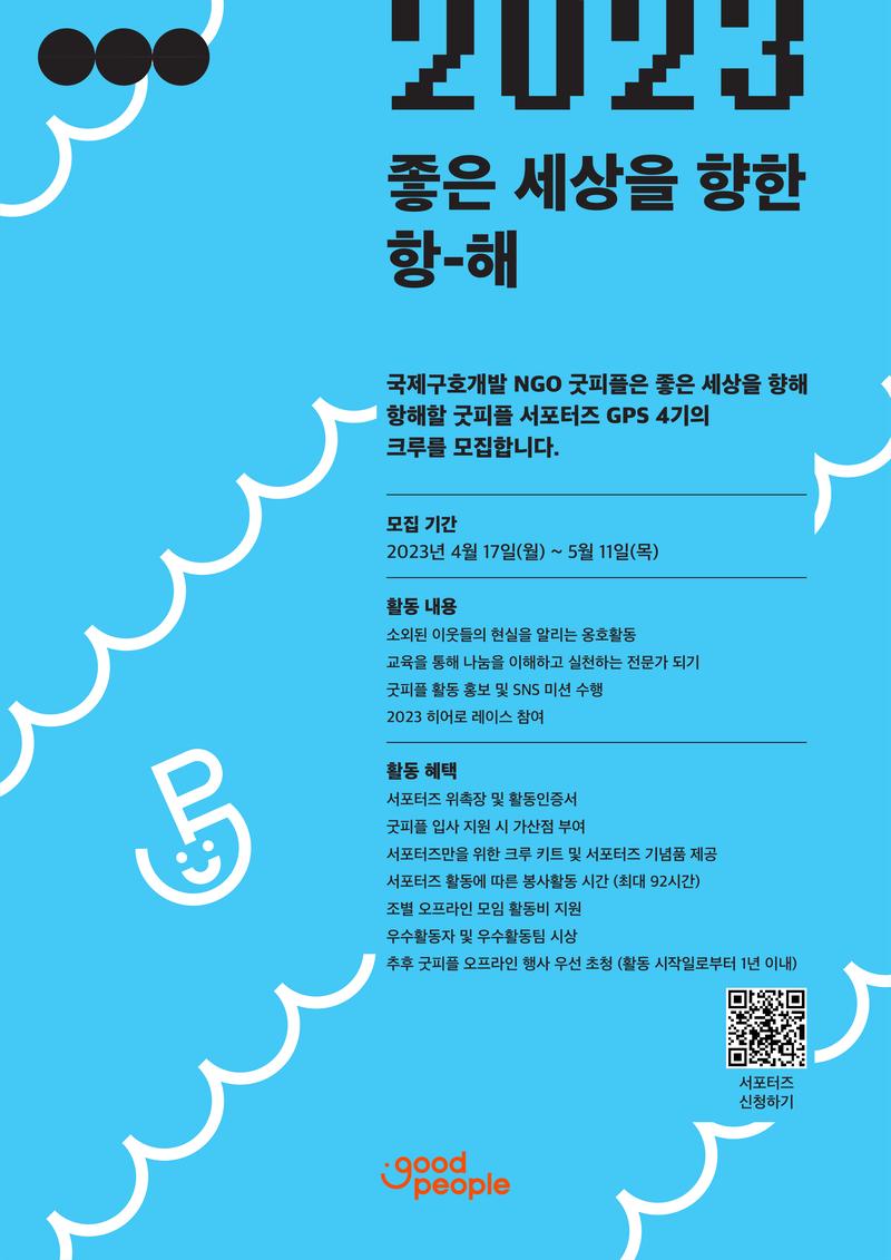 굿피플과 함께 좋은 세상을 만들어 갈 굿피플 서포터즈 GPS 4기를 다음과 같이 모집합니다.