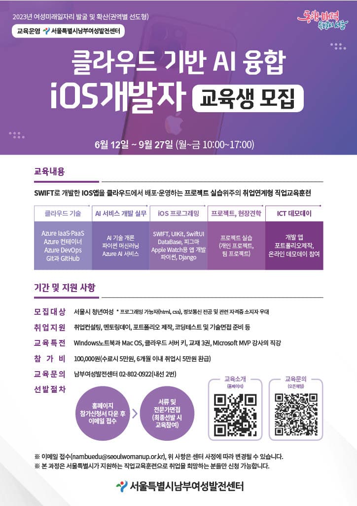 클라우드 기반 AI 융합 iOS 개발자 과정 교육생 모집
