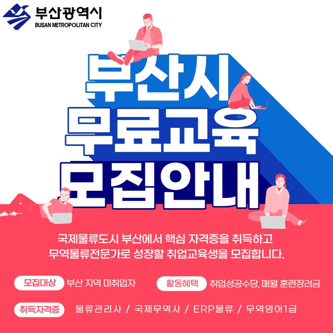 - 부산시 전액국비무료 무역·물류 분야 취업특화 훈련