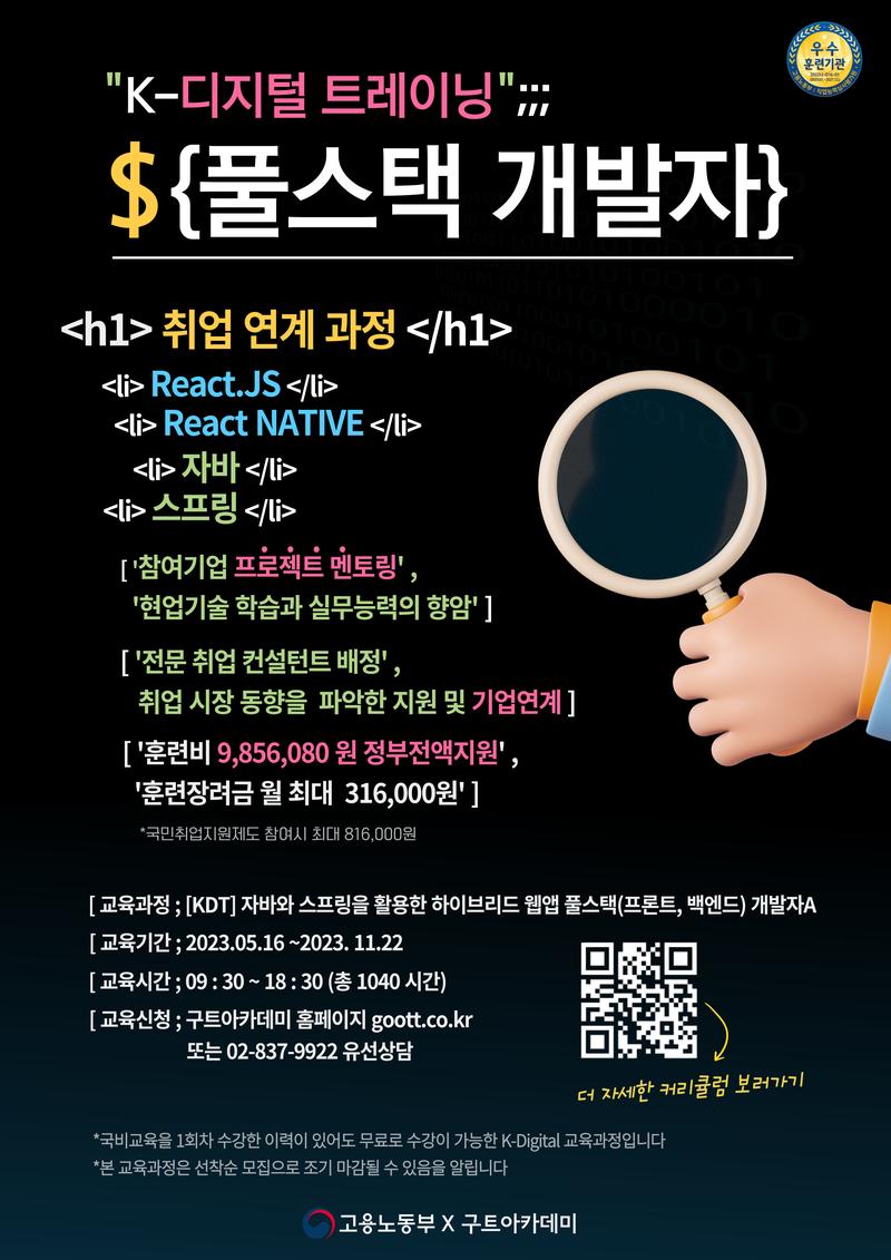 - 구트아카데미 홈페이지 신청 : https://goott.co.kr/ - 전화 신청 : 02-837-9922