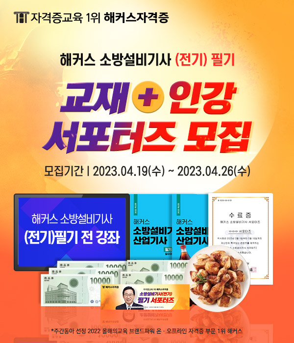 무료로 체험해보실 수 있는 [해커스 소방설비기사 (전기) 필기 교재+인강 서포터즈]를 모집합니다.
