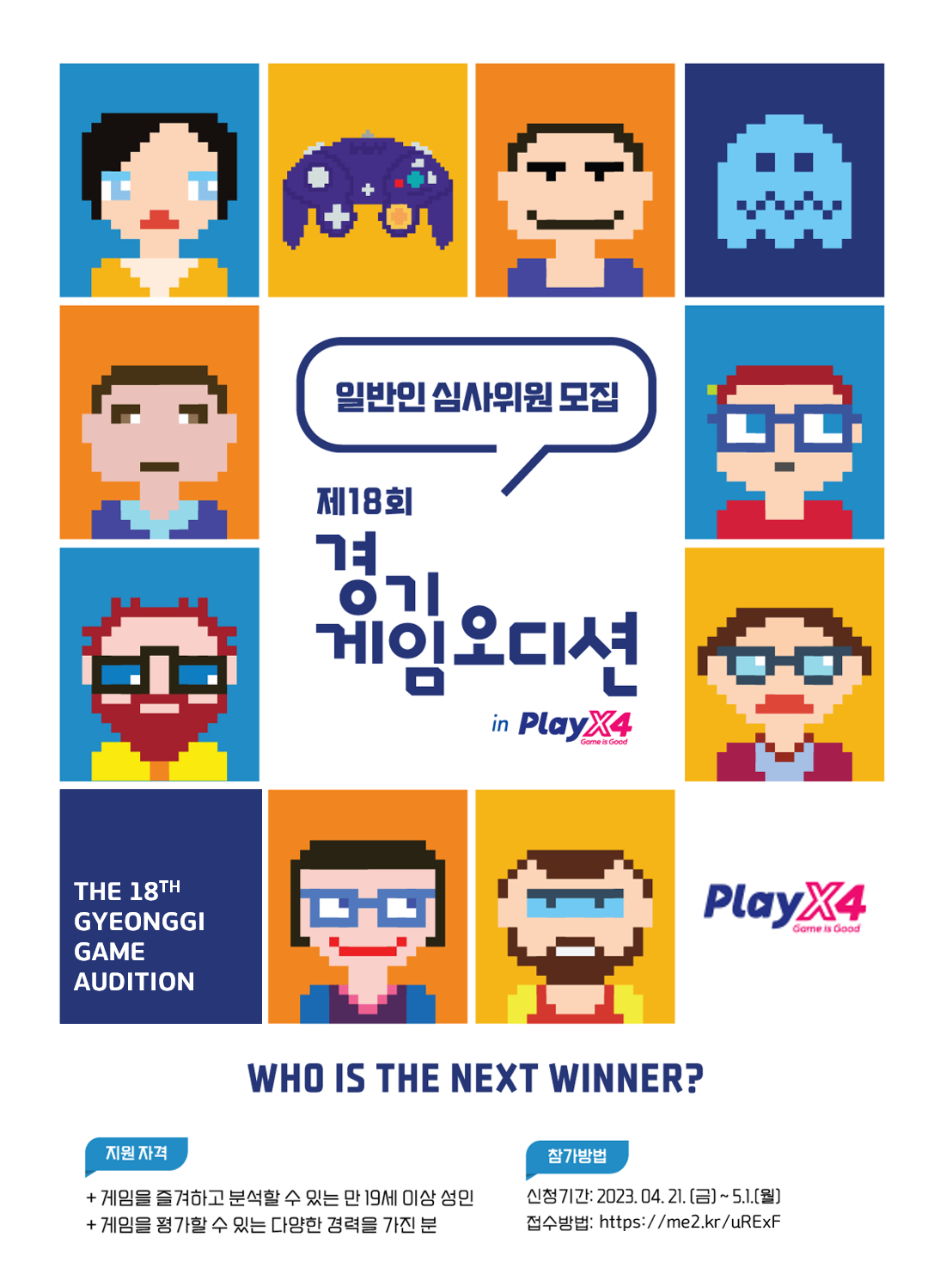 안녕하세요, 제18회 경기게임오디션 사무국입니다. '제18회 경기게임오디션'에 일반인 심사위원으로 참가할 분들을 모집합니다.