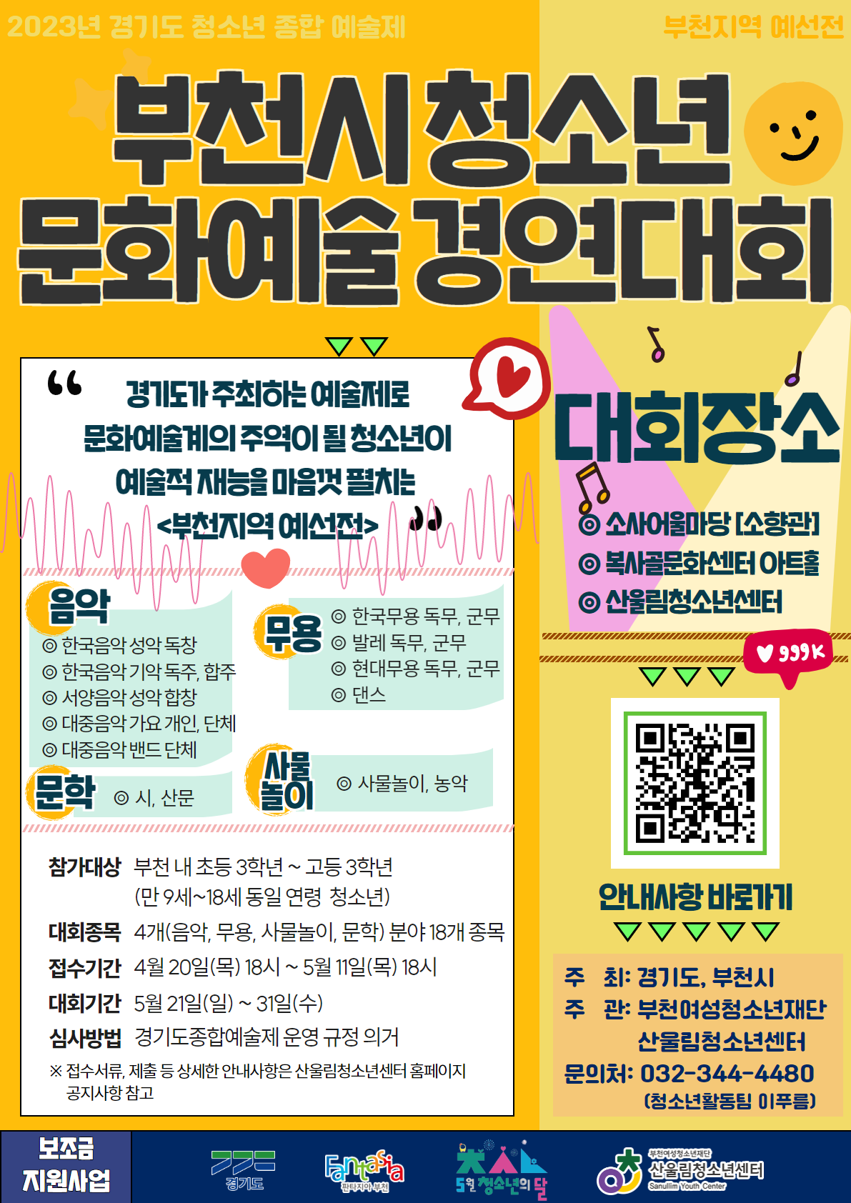 제목 : 2023년 부천시청소년문화예술경연대회 (제31회 경기도예술제)