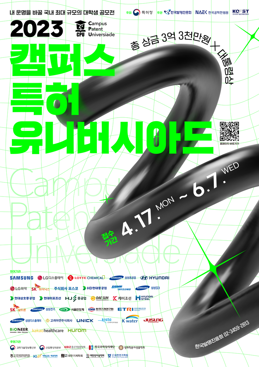 - 대회 출품전 이미 출원 또는 등록된 특허·실용신안은 본인의 발명 또는 고안이라 하더라도 수상 불가능