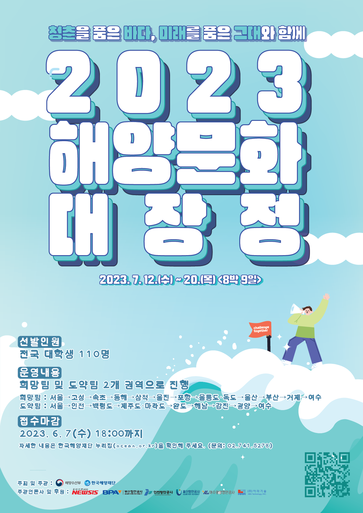 - 모집 대상 : 참가 대학생(기존 해양문화 대장정에 참가하지 않은 대학생) 희망팀 50명, 도약팀 50명,