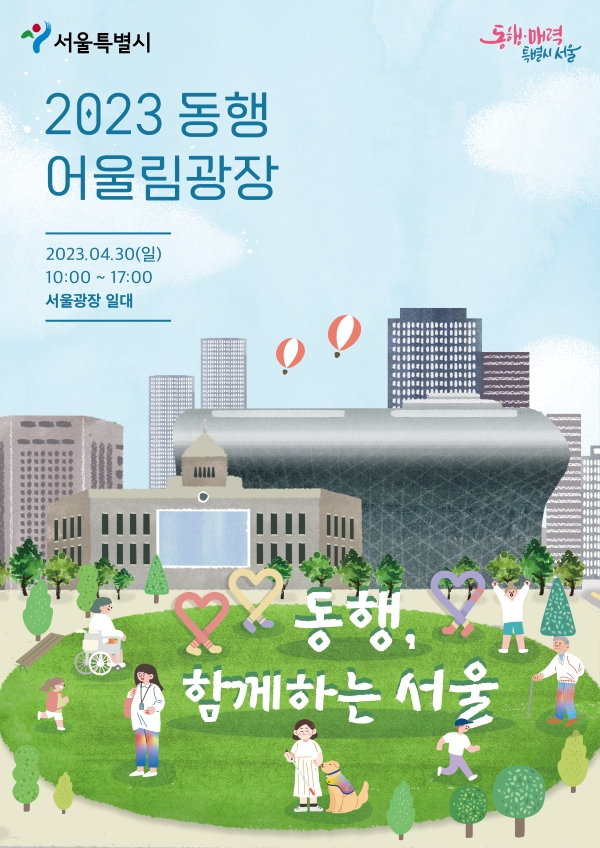 동행, 함께 하는 서울🫶🏻 여러분은 [동행] 하고 있나요? ‘2023 동행, 어울림 광장’에서 함께 동행할 자원봉사자 분들을 모집합니다! #2023동행, 어울림광장 🗓️ 봉사시간 : 4월 30일 일요일 09:00\~18:00 🗓️ 모집기간 : 2023. 04. 21 \~ 04. 27 (선착순 30명) ⛳️ 행사장소 : 서울광장 (서울특별시 중구 세종대로 110) ✔️운영부스 : 행사장 안내가 필요한 분들 간단한 응대 등 ✔️교육부스 : 교육에 참여하는 시민들의 안전 확인 및 간단한 응대 등 ✔️체험부스 : 체험에 참여하는 시민들의 안전 확인, 재고 소진 시 전달 등 ✔️현장정리 : 시민들의 안전 확인, 행사 중 나오는 쓰레기 정리 등 ✔️무대 : 무대 앞 좌석 시민들의 안전 확인 등 ✔️작품부스 : 작품을 이용하는 시민들의 안전 확인, 시스템 부스에 가까이 오지 않도록 확인 등 ※ 12:00 \~ 13:00 점심시간 중 식사 제공 자세한 내용은 1365 자원봉사포털(https://www.1365.go.kr/vols/P9210/partcptn/timeCptn.do?type=show&progrmRegistNo=2971894)을 통해 확인해주세요. 많은 관심을 부탁드립니다!!