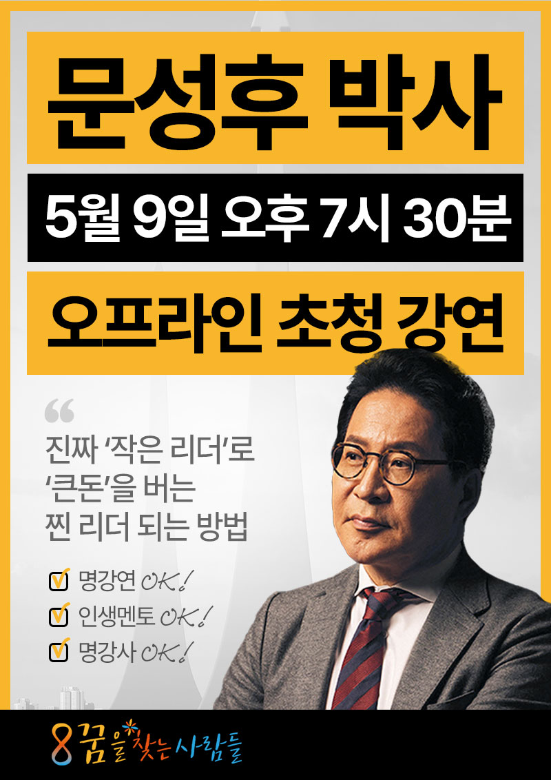 문성후 박사의 특별 강연이 궁금하시다면? 📌 꿈찾사 수강신청은 아래 카페에서 참여하세요!! https://cafe.naver.com/ArticleList.nhn?search.clubid=23561339&search.menuid=162&search.b