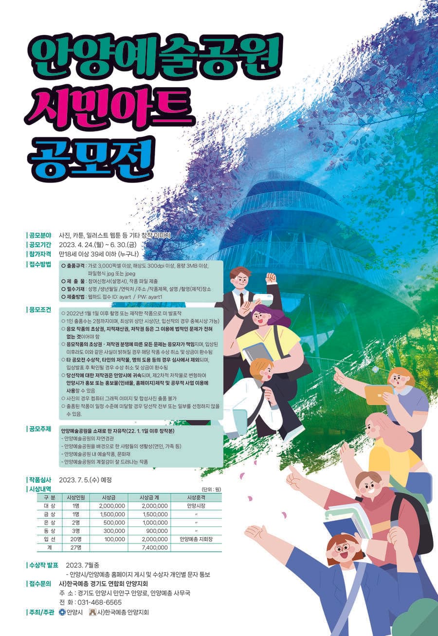 6. 문의처 : 사)한국예총 경기도 연합회 안양지회 ❍ 주 소 : 경기도 안양시 만안구 안양로, 안양예총 사무국 ❍ 전 화 : 031-468-6565
