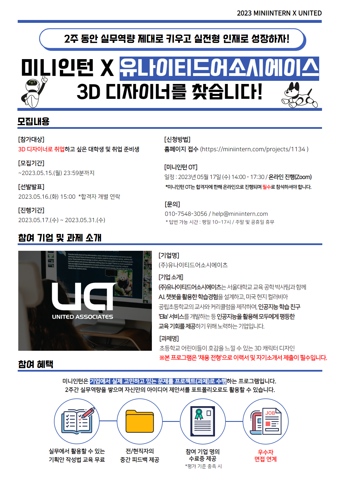 ▷기타/ 문의 E-MAIL : help@miniintern.com TEL : 010- 7548- 3056 (평일 10시\~18시/ 주말 및 공휴일 휴무)