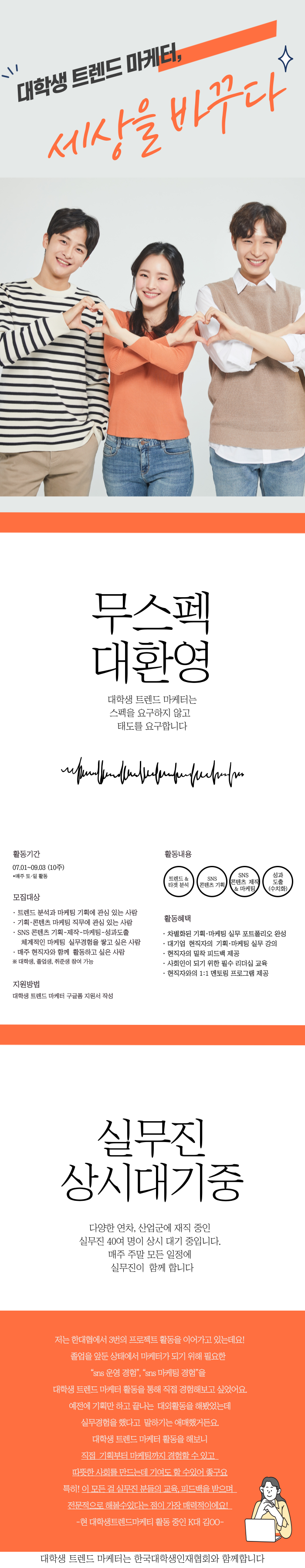 대학생 트렌드 마케터는 스펙을 요구하지 않고 태도를 요구합니다.
